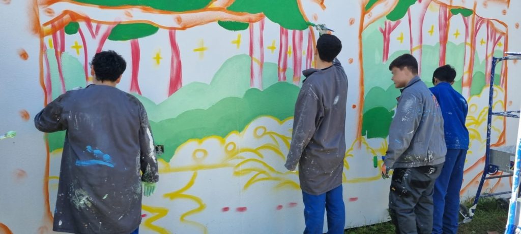 Ce projet s’inscrit pleinement dans une démarche de découverte du métier de peintre. Les élèves ont pu s’initier aux outils professionnels — pinceaux, rouleaux — et apprendre leur utilisation adaptée selon les surfaces et les effets recherchés. Au-delà des gestes techniques, la fresque a été l’occasion de développer des compétences essentielles telles que le travail en équipe, l’organisation collective et le respect d’un projet commun.